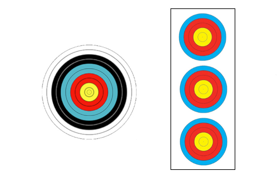 • Trispots verticaux de 40 : Arcs à poulies U15, U18, U21, S1, S2, S3. Arcs Classique U18, U21, S1, S2, S3, mentionnant ce choix lors de l’inscription. Arcs nus Scratch mentionnant ce choix lors de l’inscription.